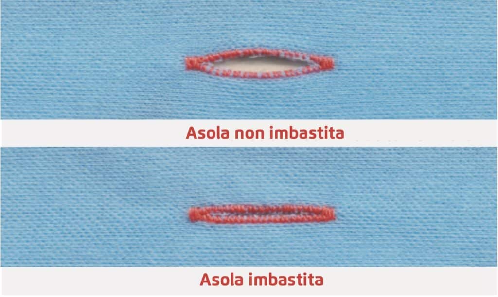Possibilità di imbastire l’asola, risulta soprattutto utile nei tessuti elastici.