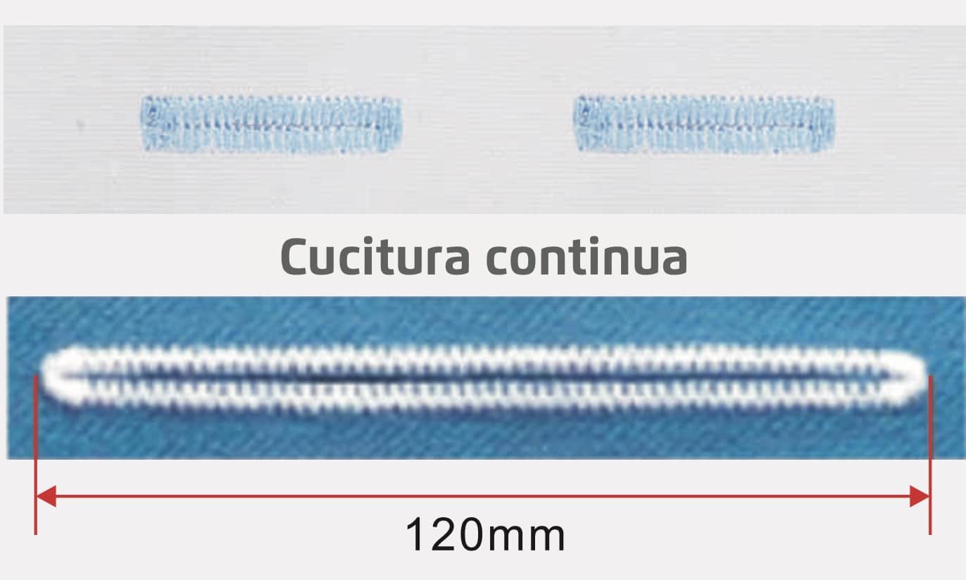 Il multitaglio permette di tagliare asole lunghe senza cambiare il coltello, mentre la cucitura continua permette di fare più asole di fila o asole da 120mm nel modello 1792.