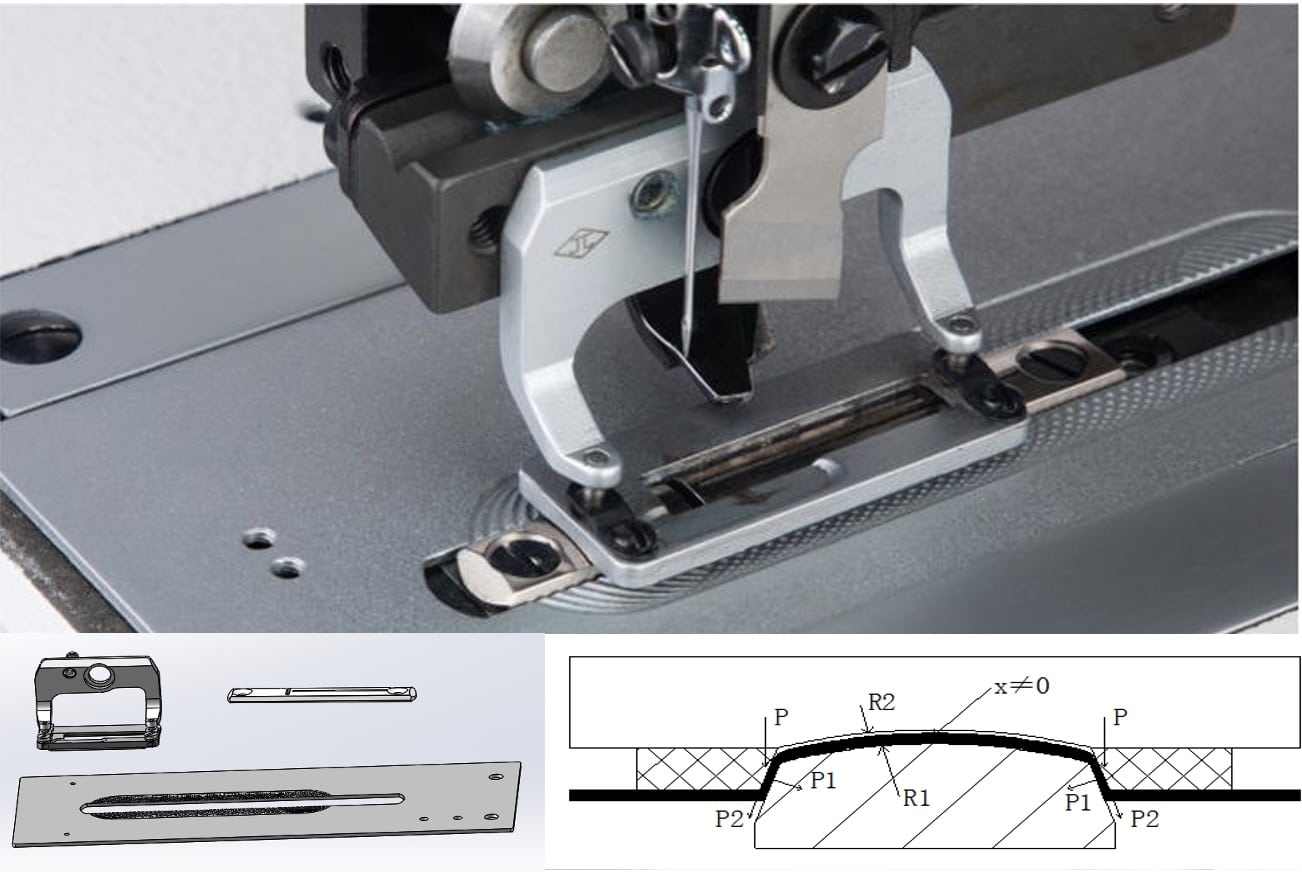 Sottoclasse per maglieria e tessuti elastici con placca bombata dedicata e piedino ad arco per ridurre la possibilità di rottura del filo.