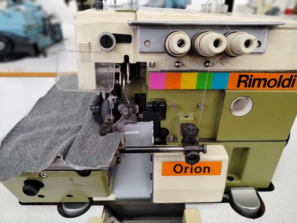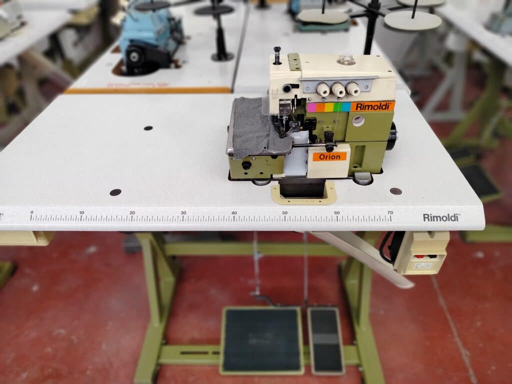 Tagliacuci Rimoldi Orion 627 modificata per la realizzazione del punto invisibile (sottopunto) completa di tavola sostegno motore e interruttore USATA REVISIONATA